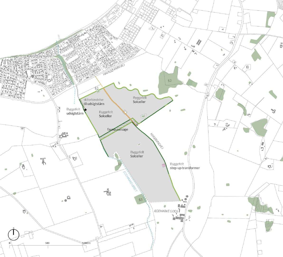 Vejadgang til solcelleparken skal ske fra syd via Egemarke Gods, ad eksisterende vej.