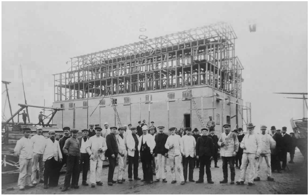Pakhuset under opførelse i 1913