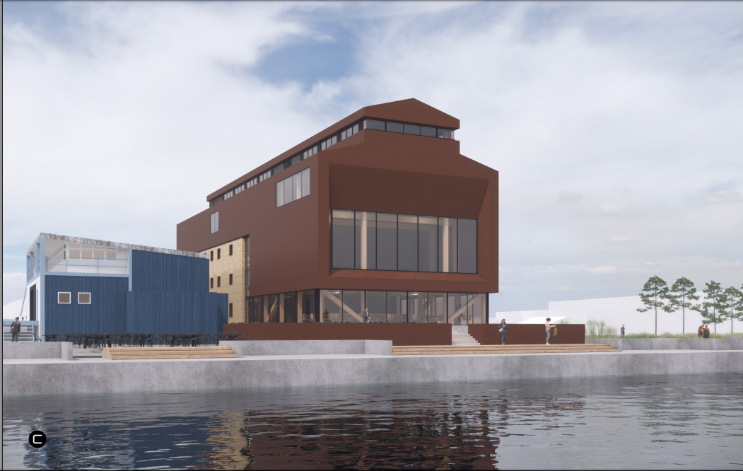 Bygningens historiske og karakteristiske tagprofil genskabes i hovedtræk ved at placere en ny bygningskrop ovenpå den eksisterende teglbygning fra 1913, og tilføje yderligere bygningsareal mod vandet. Det transformerede bygningsvolumen kommer til at danne ramme for en samlet rumlig bevægelse fra byen mod vandet med varierede visuelle oplevelser indenfor og udenfor bygningen.