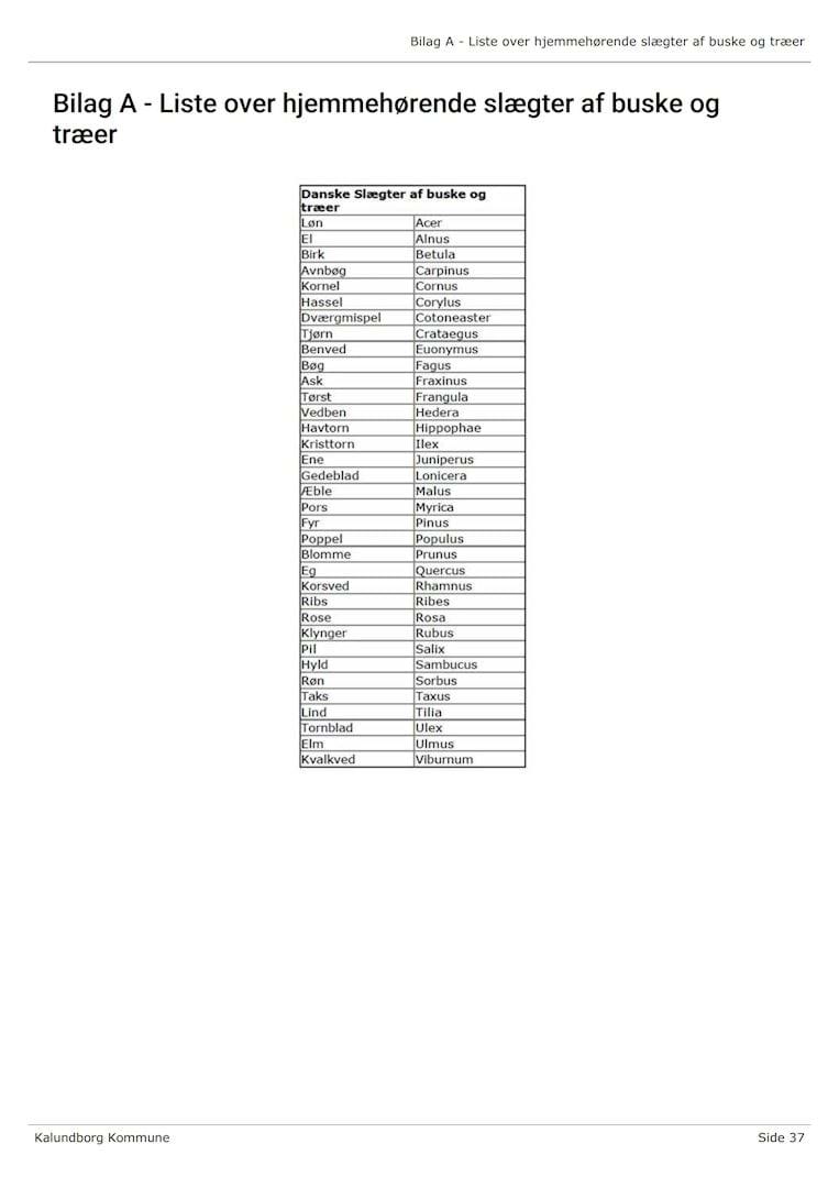 Bilag A - Liste over hjemmehørende slægter af buske og træer