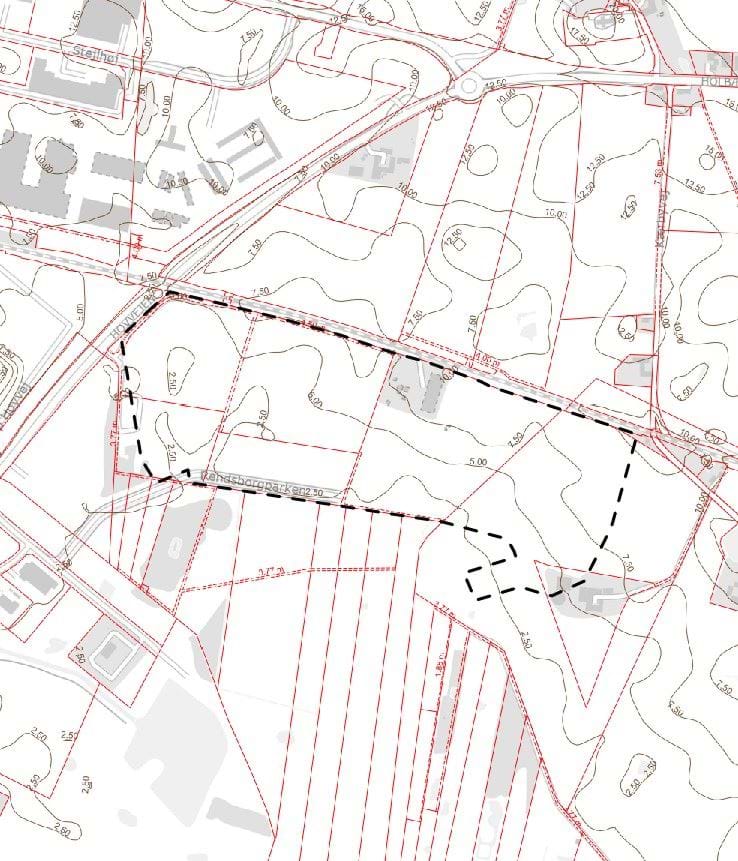 Figur 3: Lokalplanområdet med højdekurver (2,5 m).