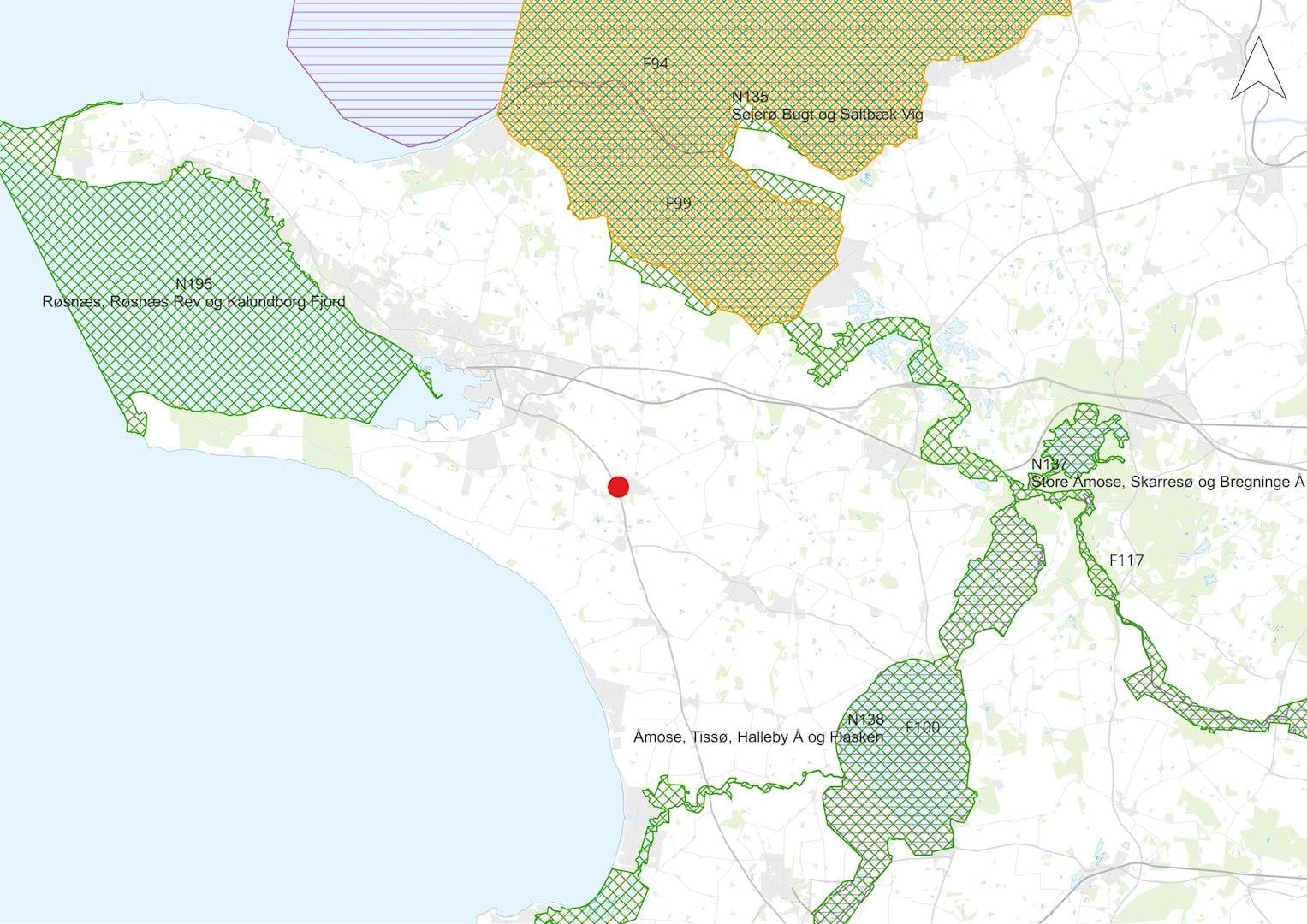 Lokalplanområdet ligger ca. 5,6 km fra nærmeste internationale naturbeskyttelsesområde, Natura 2000 område nr. 154 – Sejerø Bugt, Saltbæk Vig, Bjergene, Diesebjerg og Bollinge Bakke.