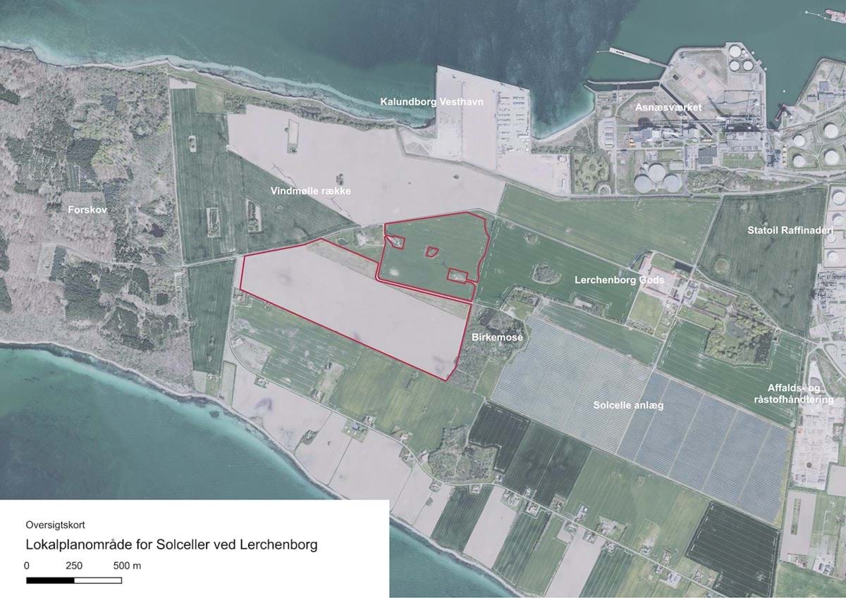 Lokalplan for solceller ved Lerchenborg dækker et samlet areal på ca. 64 ha på Asnæs i den vestlige del af Kalundborg Kommune. Området ligger i et åbent landområde vest for Lerchenborg Gods. Det nærmeste bysamfund er Kalundborg by ca. 2 km nordøst for projektområdet og Melby ca. 2,5 km øst for projektområdet.