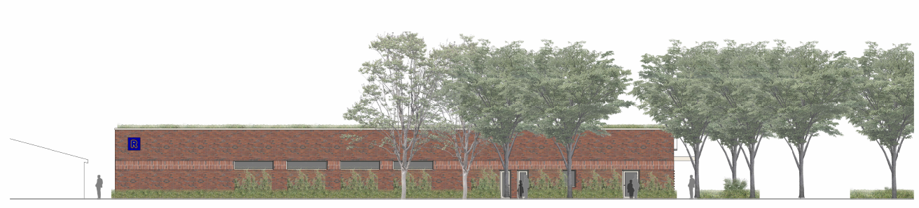 Eksempel på facadeudtryk mod slagelsevej (øverst), mod parkeringspladsen (i midten) og mod stien (nederst).